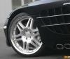 Auf den ersten Blick stechen darüber hinaus die mehrteiligen Monoblock VI 20 Zoll Leichtmetallfelgen hervor. Die ganz polierten Räder mit sechs Doppelspeichen füllen den vorhandenen Platz in den Radhäusern in den Dimensionen 9.5Jx20 vorne und 11.5Jx20 auf der Hinterachse voll aus. Die optimalen Hochleistungspneus wurden mit den Größen 255/30 ZR 20 und 305/25 ZR 20 gewählt. Durch die Umrüstung auf die 20 Zoll Rad/Reifen-Kombination gewinnt der Mercedes-Benz SLR McLaren noch weiter an Fahrdynamik.