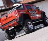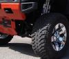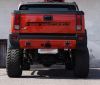 Das eigentliche Highlight des Jumbo-Hummers ist aber dessen Fahrwerk. Das große Meerestier wurde mit spezieller Geiger-Fahrwerkstechnik um satte zehn Zoll, also rund 25 Zentimeter, HÖHER gelegt, so dass Jumbo Schreiner nun noch deutlicher über allen anderen Verkehrsteilnehmern thront. Dazu spendierte GeigerCars.de seinem H2 einen Satz verchromter Aluminiumfelgen der Größe 12x20 Zoll. Die grob profilierten Toyo Open Country M/T-Offroad- Reifen tragen die ungewöhnliche Maßangabe 38x15.50R20.