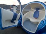 Schon das Exterieur des auf seine Betrachter extrem freundlich wirkenden Pivo II setzt ein starkes Design-Statement. Scheibenförmige Radnabenmotoren an allen vier Rädern machen die Installation von Antriebsaggregaten im Innern der Karosserie überflüssig. Das spart ebenso Bauraum wie der Einsatz kompakter Lithium-Ionen-Batterien und die in jedem Motor integrierten Drehrichter.Dank der komplett drehbar auf dem Fahrgestell gelagerten Kabine können Passagiere aus jeder beliebigen Richtung in den Pivo II einsteigen. Fahrer und Beifahrer gelangen so bequem ins Innere wie sonst nur ins eigene Wohnzimmer. Haben sie in ihrem Sitz Platz genommen, umgibt sie eine ausgesprochen angenehme, lichtdurchflutete Atmosphäre. . Der Fahrersitz ist zentral angeordnet, dahinter finden zwei weitere Reisende auf einer im Stil eines Clubsessels gehaltenen Sitzbank Platz.