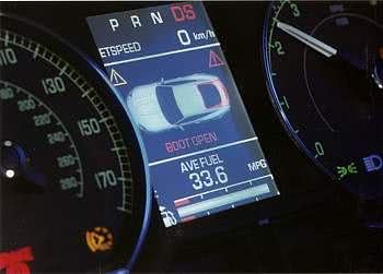Das Informationssystem des neuen neuen Jaguar XK stammt von Visteon. Ein hochwertiges 3,8 Zoll VGA-Farbdisplay basierend auf TFT-Technologie kennzeichnet die Instrumentierung aus. Mit dem extra großen TFT-Display bietet Jaguar im XK ein Fahrerinformationssystem, das modernste Funktionalität mit dem markentypisch hochwertigen Design verbindet. Seitlich des Displays befinden sich zwei runde Hauptanzeigen in Chromringen, der weiße Anzeigenhintergrund in Jaguar-Grün ausgeleuchtet. Mit einem leistungsstarken 32-Bit-Prozessor, drei Multiplex-Netzwerken und dem Grafikcontroller ausgestattet, ist das hochwertige 256-Farb-Display zur übersichtlicheren Auswahl und Darstellung der Fahrerinformation in verschiedene Zonen unterteilt. So sind Fahrzeugwarnmeldungen und Informationen über Funktionen wie etwa den gewählten Gang, Tempomat, Reifendruckwarnung, etc. besser zugänglich.