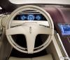 Im Interieur sorgt ein innovatives Lichtkonzept für ein einzigartiges Ambiente. Aus den Türverkleidungen, Fußräumen, Sitzen, der Mittelkonsole und – besonders effektvoll – aus dem im Dachhimmel integrierten Markenzeichen, dem „Crosshatch Star“, emittierendes blaues Licht kreiert eine stimmungsvolle Wohlfühl-Atmosphäre. Diese genießen die Insassen auf vier cremefarbenen Einzelsitzen, deren Leder besonders umweltschonend gegerbt wurde. Überhaupt nimmt der Lincoln MKR Concept durch die vielfältige Verwendung erneuerbarer Rohstoffe in seinem Innenraum eine Vorreiterrolle ein.