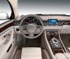 Der Innenraum des A8 verkörpert die Philosophie von Audi – den hohen Anspruch an Qualität und Hochwertigkeit. Alle Instrumente und Bedienelemente sind mit größter Liebe zum Detail gestaltet. Rundinstrumente, die in Röhren in Aluminiumoptik liegen, prägen das Bild des Cockpits. Eine Blende in Klavierlack fasst den ausfahrbaren Sieben-Zoll-Monitor des Bediensystems MMI ein. Für die Oberflächen, die Dekorleisten, die Sitze, die Türverkleidungen und den Dachhimmel stehen zahlreiche edle Farben und Materialien zur Wahl. Darüber hinaus kann sich der Kunde im Programm Audi exclusive das Interieur ganz nach seinen persönlichen Wünschen schneidern lassen.Das luxuriöse Platzangebot und die komfortablen Sitze schaffen die Grundlage für das entspannte Wohlgefühl, das im Innenraum des A8 herrscht. Die vorderen Sessel lassen sich elektrisch einstellen, in ihrer Highend-Version haben sie Lüftungs- und Massagefunktionen an Bord. Auch im Fond offeriert Audi Einzelsitze mit vergleichbarer Ausstattung; die Office-Pakete bringen mit Klapptischen und Kühlboxen noch mehr Luxus in den A8.