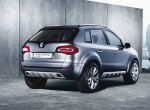 Das Profil des Koleos Concept beeindruckt mit Proportionen, die Dynamik suggerieren. Auf dem Glasdach ruhen profilierte Träger aus Aluminium. Die dezenten Kotflügelverbreiterungen bringen die 19-Zoll-Aluminiumfelgen besonders zur Geltung. Die Bodenfreiheit von 20 Zentimetern und der Unterfahrschutz vorne und hinten ermöglichen Ausflüge abseits befestigter Wege. Hinten unterstreicht die stark geneigte Heckscheibe den dynamischen Anspruch des Koleos Concept. Das ausgesprochen markante Design der Heckpartie setzt das Markenlogo wirkungsvoll in Szene. In den Heckstoßfänger ist ein Doppelauspuff integriert, der den leistungsfähigen Antrieb des Koleos Concept erahnen lässt.