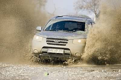 In Schwung bringen den Santa Fe der zweiten Generation weiter entwickelte Triebwerke, die sich durch hohe Leistungsfähigkeit, sparsamen Verbrauch, maximale Laufruhe, Langlebigkeit und Umweltfreundlichkeit auszeichnen. Zur Auswahl stehen ein laufruhiger Sechszylinder-Benzinmotor oder ein durchzugsstarker Common-Rail-Turbodiesel-Direkteinspritzer mit vier Zylindern. Beide sind sowohl mit Front- oder Allradantrieb im Angebot und ermöglichen dem neuen Santa Fe jederzeit zügige Fortbewegung. So bietet der ganz aus Leichtmetall gefertigte und mit kontinuierlicher variabler Ventilsteuerung CVVT ausgerüstete V6 mit 2,7 Litern Hubraum eine Leistung von 139 kW (189 PS). Damit ist der Santa Fe als Fronttriebler, der ab Werk mit Fünfgangschaltung geliefert wird, bis zu 190 km/h schnell. Den Sprint aus dem Stand auf Tempo 100 absolviert der 2.7 V6 2WD innerhalb von 10,0 Sekunden. Auch der Durchzug unterstreicht die Talente des 24-Ventilers: Mit einem maximalen Drehmoment von 248 Newtonmeter, das bei 4.000 min-1 anliegt, können beispielsweise Überholvorgänge rasch abgeschlossen werden.Die mit einer Vierstufen-Automatik inklusiver zweiter, manueller Schaltebene kombinierte Allradversion steht dem zweiradgetriebenen Bruder kaum nach: Lediglich 11,7 Sekunden vergehen, bis die 100 km/h-Marke erreicht ist, und die Höchstgeschwindigkeit des Santa Fe 2.7 V6 4WD beträgt 176 km/h. So flott der Sechszylinder den Santa Fe vorantreibt, so genügsam gibt er sich beim Kraftstoffkonsum: Der Gesamtverbrauch pro 100 Kilometer Fahrstrecke beträgt lediglich 10,1 Liter beim 2WD mit Schaltgetriebe und 10,6 Liter bei der vierradgetriebenen Automatikversion. Beide V6-Varianten erfüllen darüber hinaus die Euro 4-Norm.