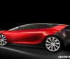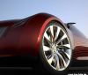 Das ändert allerdings nichts an der Tatsache, dass auch der Mazda Ryuga aus jedem Blickwinkel einen atemberaubenden Anblick bietet. Die 21 Zoll großen Räder sind extrem weit in die vier Ecken des Autos gerückt, was zu einem standesgemäßen Showauftritt verhilft. Zumal auch die aggressive Keilform selbst im geparktem Zustand den Eindruck dynamischer Bewegung vermittelt. Flächen, die an der Vorderseite schmal und an der Rückseite größer sind, spannen sich über die Räder und geben dem Exterieur so Kraft und Richtung. "Einige der Proportionen wirken wie vom Wind gepeitscht", beschreibt van den Acker. "Dramatik überall, zumal es nirgendwo eine echte Kante gibt."