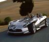 Und welches Fahrzeugkonzept symbolisiert diese Themen besser und treffender als ein offener Sportwagen? Ein ganz offener Sportwagen - ein Speedster mit langgestreckter, extrem flacher Motorhaube, mit kurzem Heck, mit maßgeschneidertem Interieur für zwei Passagiere und mit vielen stilvollen Details, die auf Anhieb Emotionen wecken und die Botschaft dieses Autos verstärken: der breite, tief liegende Lufteinlass in der Frontpartie, die flach geneigte Frontscheibe, die seitlichen Auspuffrohre oder die markanten Überrollbügel hinter den Sitzen.