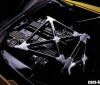 Der Roadster basiert zwar grundsätzlich auf dem Murciélago Coupé, unterscheidet sich aber in einigen wichtigen Umfängen. Vor allem neu konzipierte Rahmenstrukturteile aus Stahl und Kohlefaser gewährleisten auch ohne Dach unerschütterliche Torsionssteifigkeit. Eine wichtige Funktion übernimmt dabei eine spezielle Versteifungsstruktur im Motorraum. Auf Wunsch ist diese optisch markante Versteifung auch in Kohlefaser lieferbar.